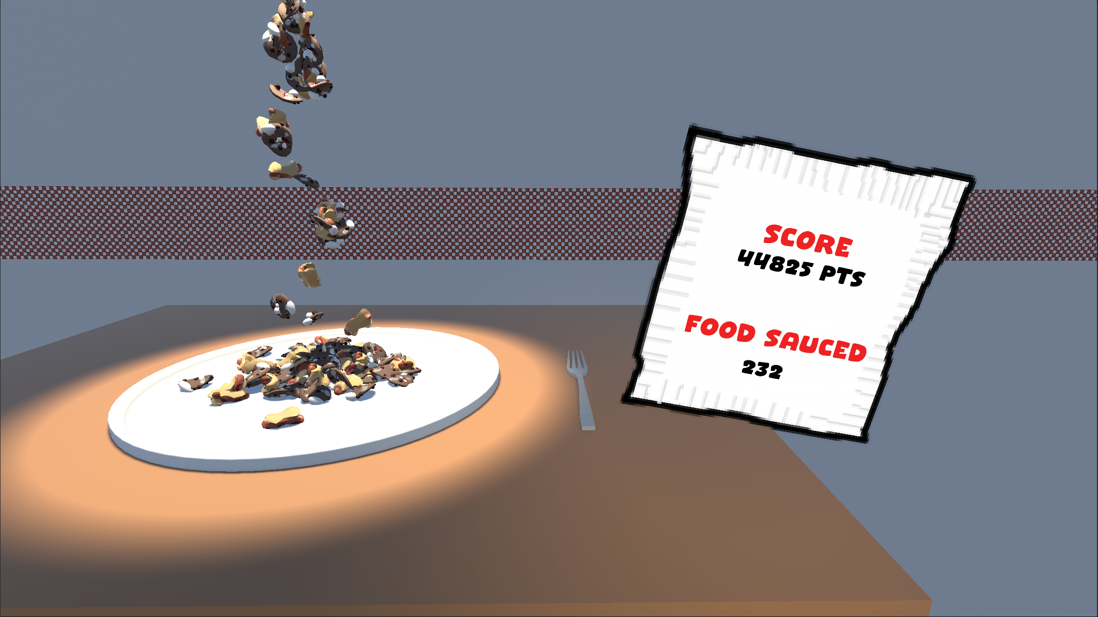 Sauce Slinger is a Point and click shooter where you fend off waves of food monsters with your sauce gun.
